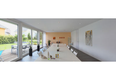 In Innenräumen braucht es einen realistischen Ausgleich zwischen dem Raum und der Sicht nach draussen. Da arbeiten wir meist mit der HDR Technik, wo unterschiedlich belichtete Bilder zu einem einzigen zusammengeführt werden.